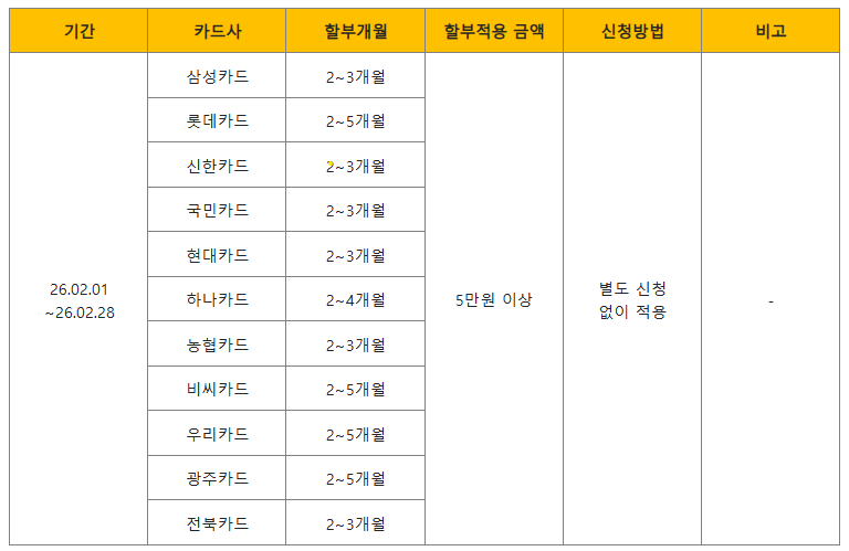2월 신용카드 무이자 안내 💳